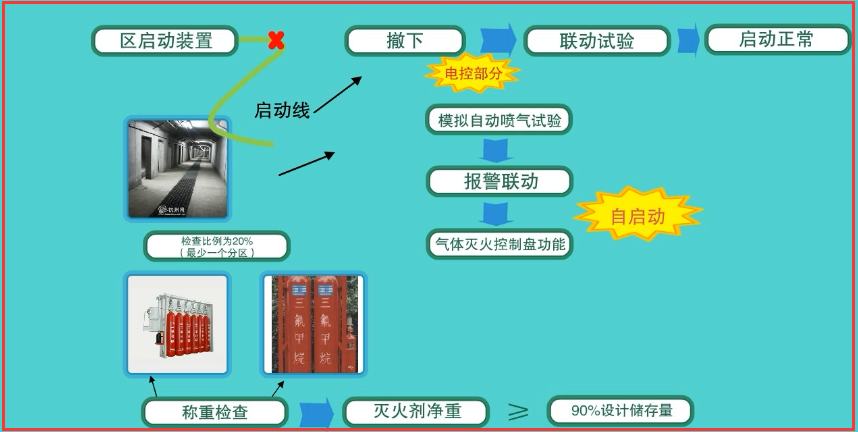 4、預(yù)制氣溶膠滅火裝置、自動(dòng)干粉滅火裝置有效期限檢查;5.進(jìn)行泄漏報(bào)警裝置報(bào)警定量功能試驗(yàn),檢查鋼瓶的比例為100%;