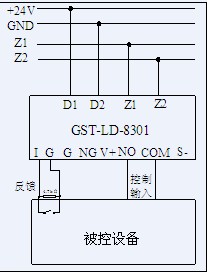 GST-LD-8301型輸入/輸出模塊與現(xiàn)場設備的接線: